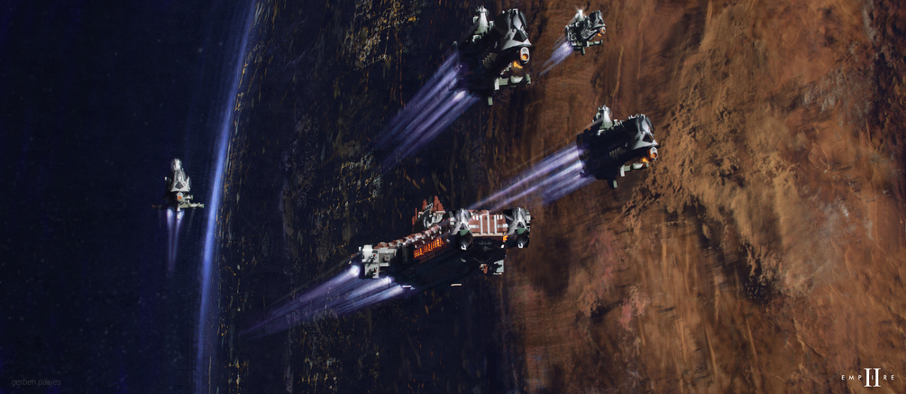4 PSDs that show the progress from 3D render to final painting for my project Empire II, as well as some additional files from earlier stages of the project.